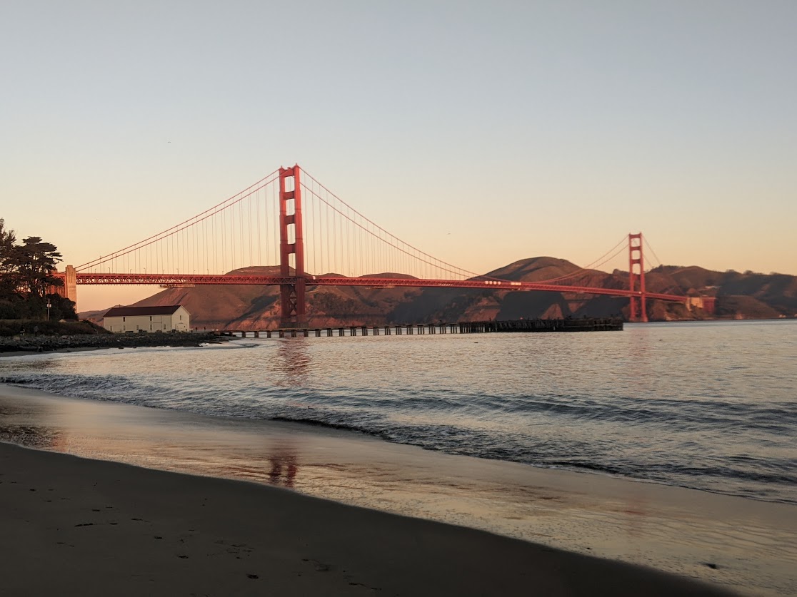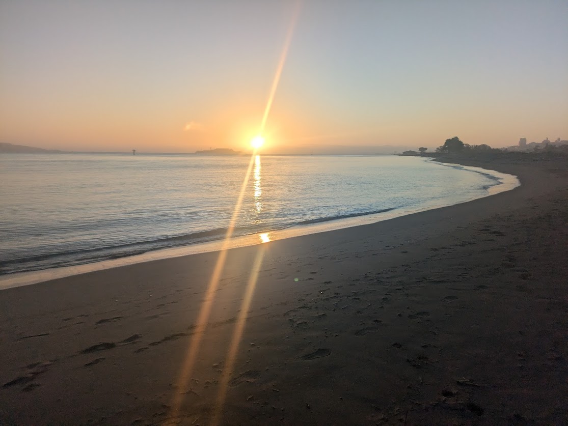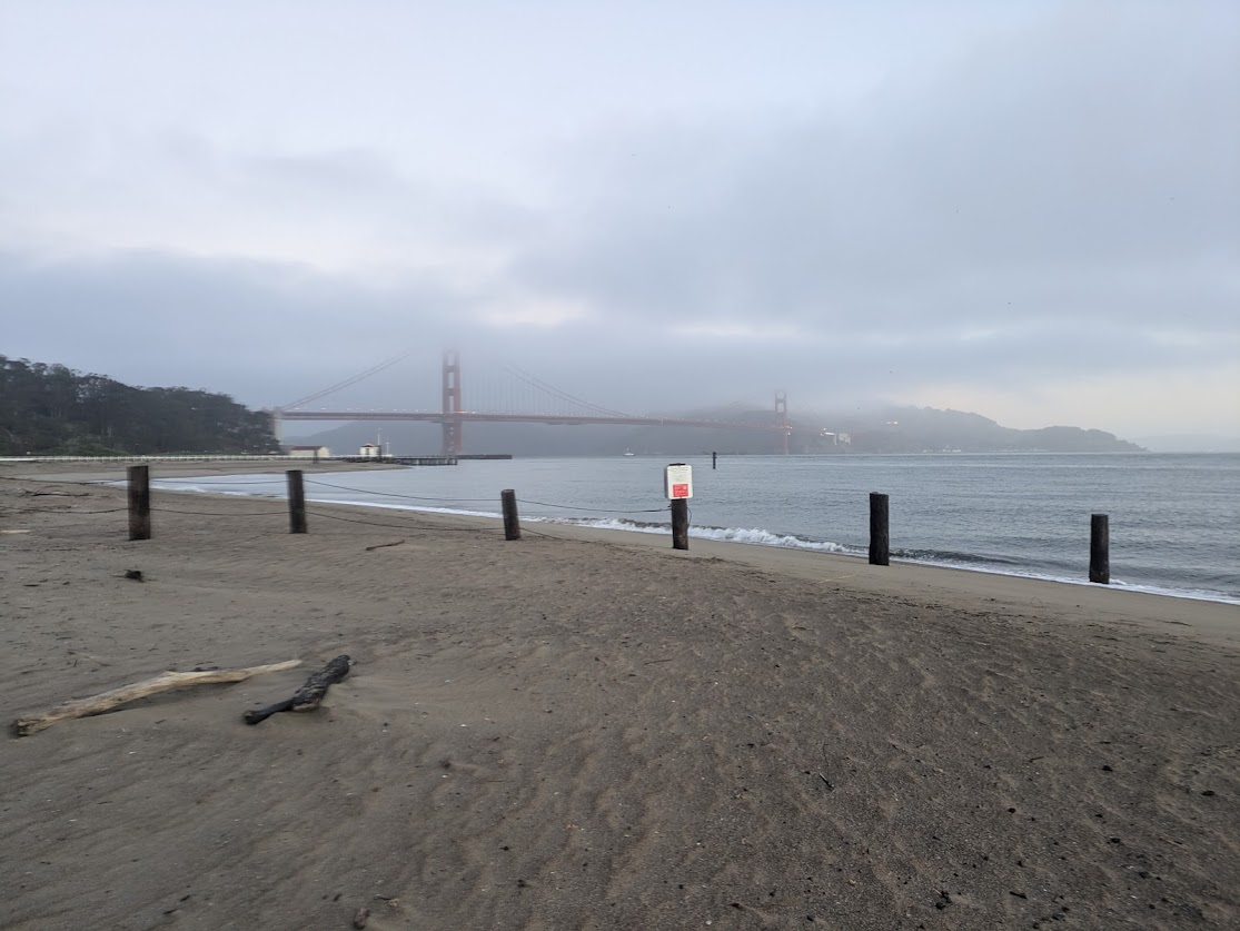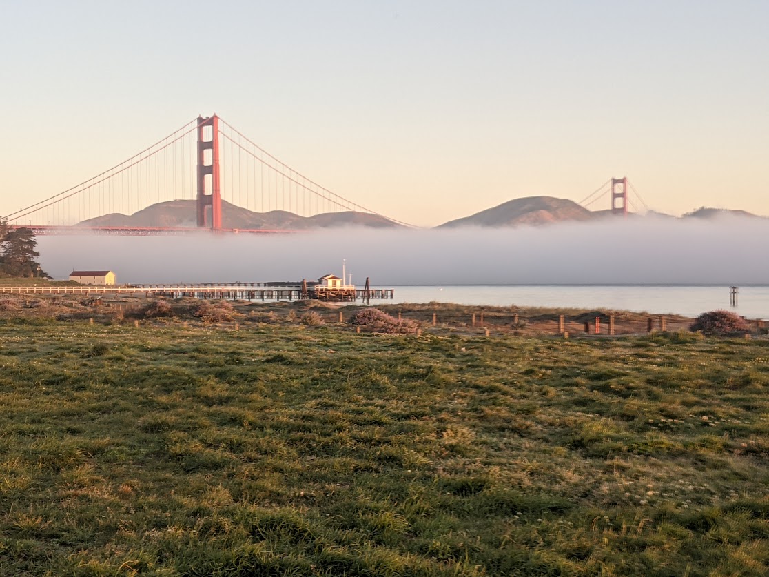This morning I went fishing at Crissy Field, one of my favorite things to do during the season from April to August. I try to go once a week. It’s the best when there’s almost no breeze and the water is glassy. I usually get there just before the sun rises over the Berkeley Hills. To the east the San Francisco skyline starts to glow. To the west the Golden Gate Bridge might be shrouded in fog or standing clear against the sky. It’s different every time.