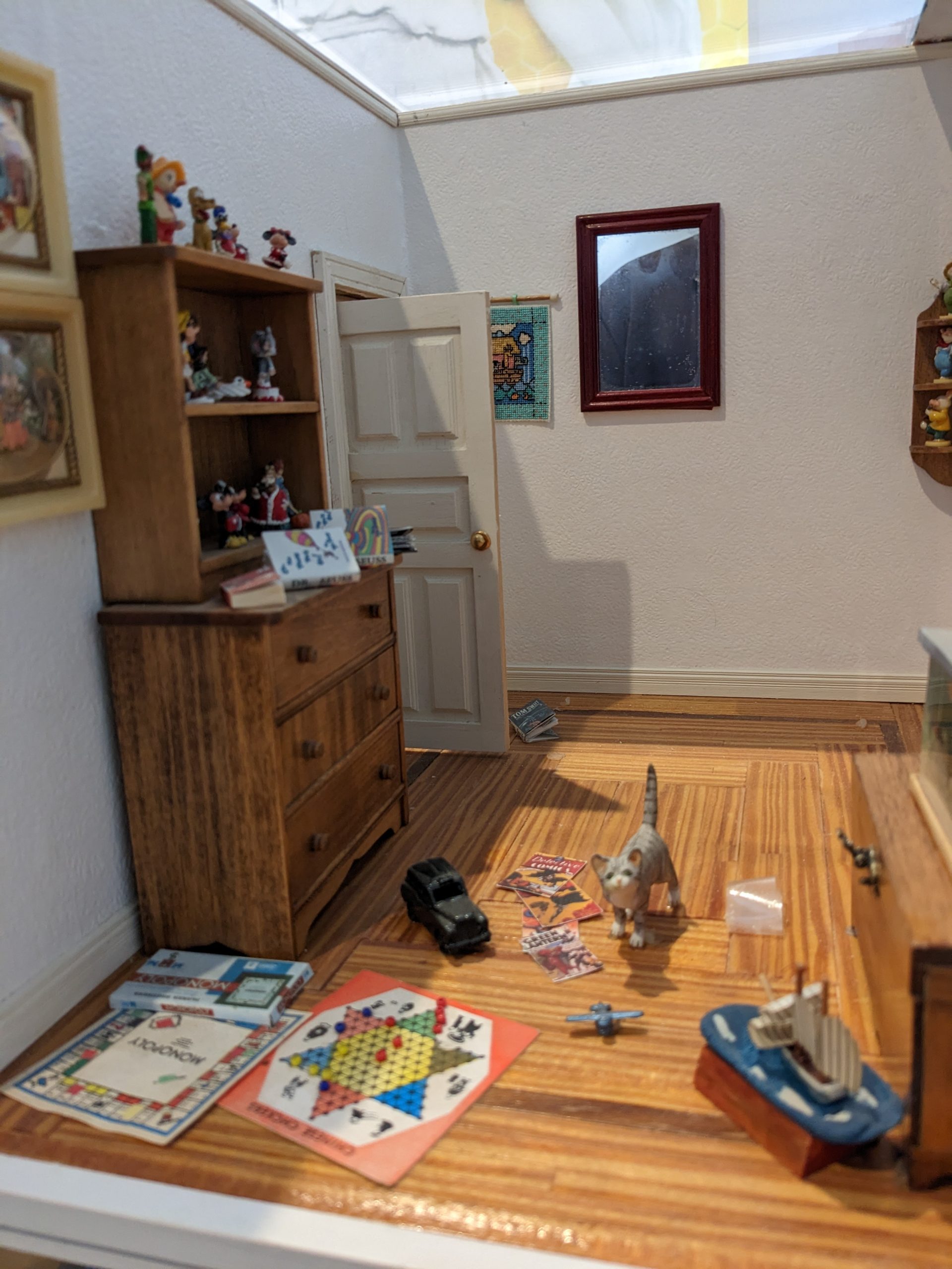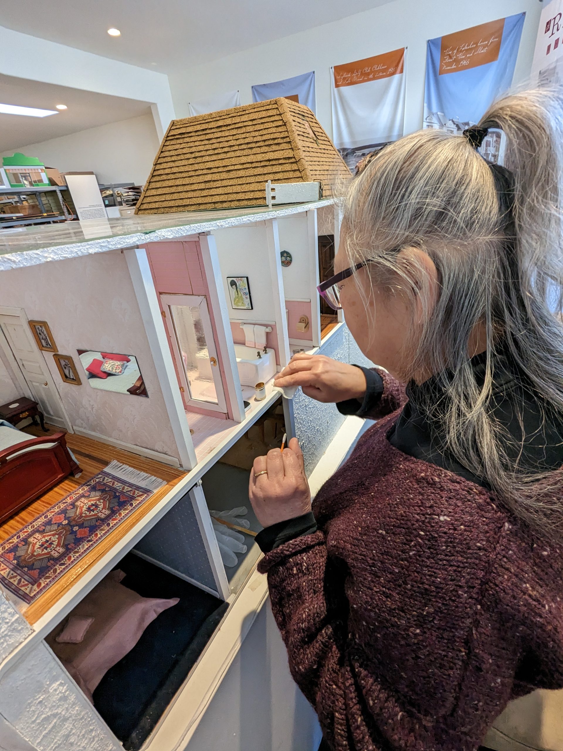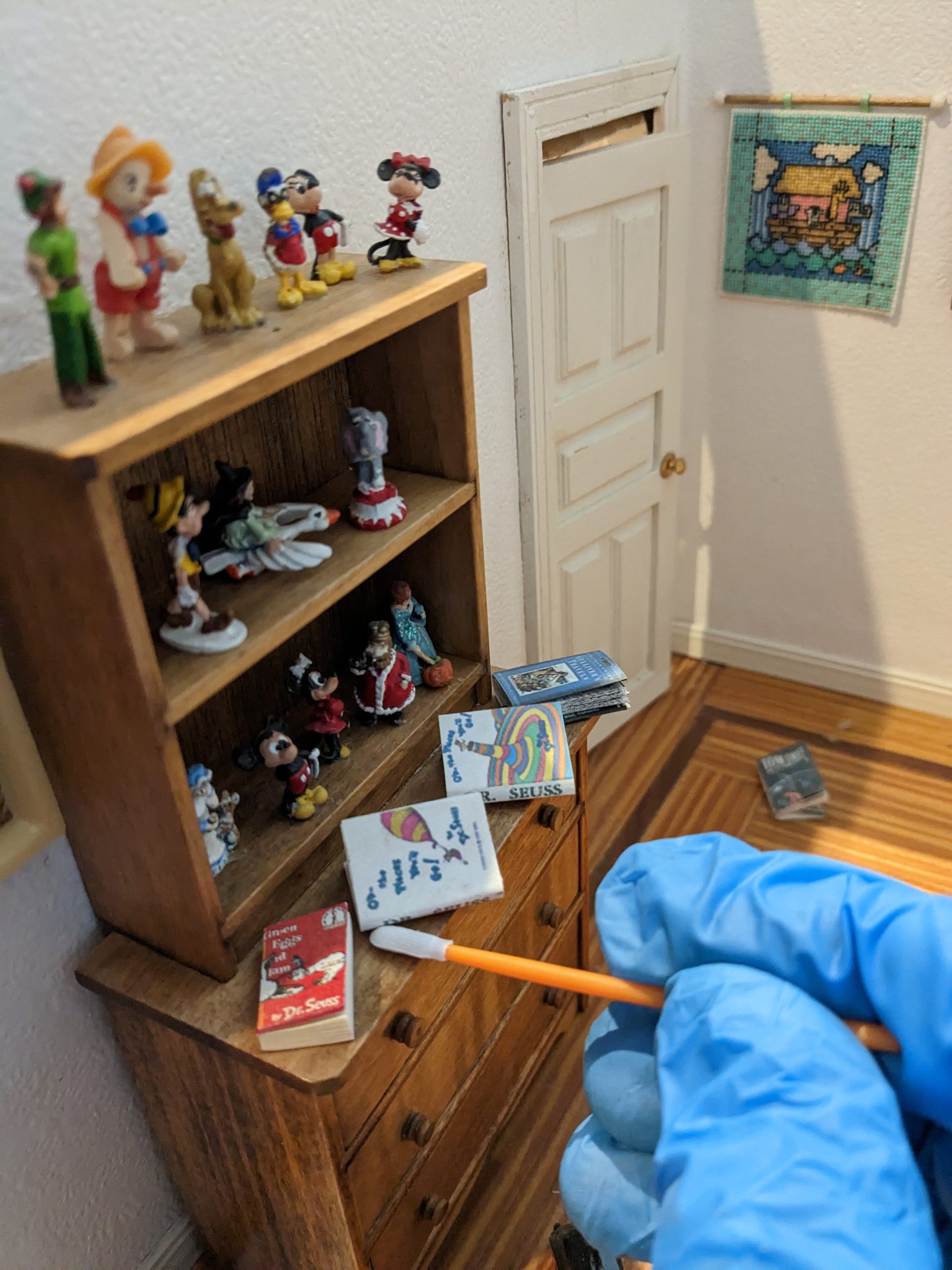 The house needed cleaning, touch-ups, and repairs. We used gentle solvents and Q-tip-style cleaners to remove years of grime without damaging the finishes. Some loose furniture and accessories needed re-gluing. A few spots required careful paint touch-ups. Nothing overly complicated, but detail work takes time.
