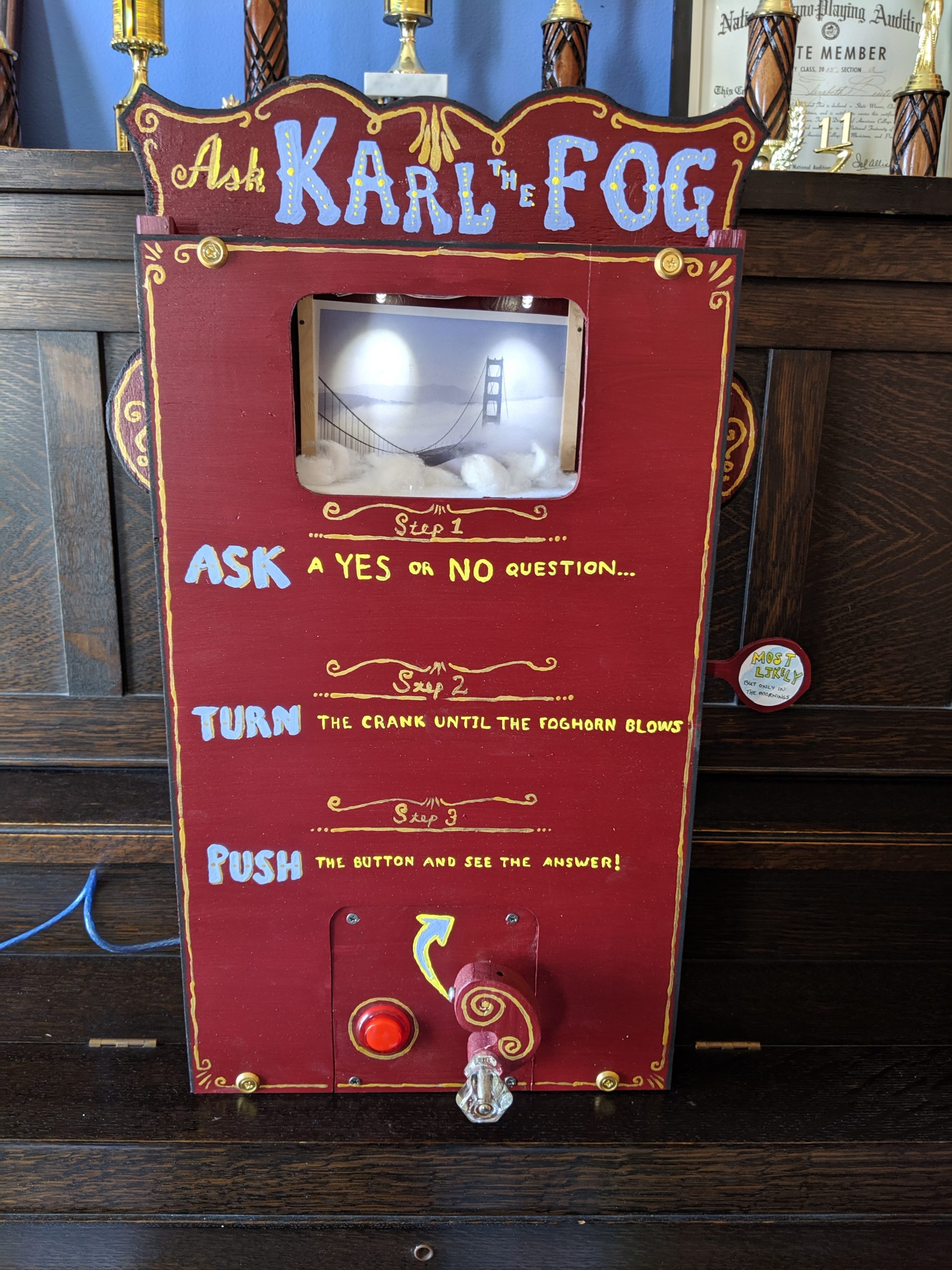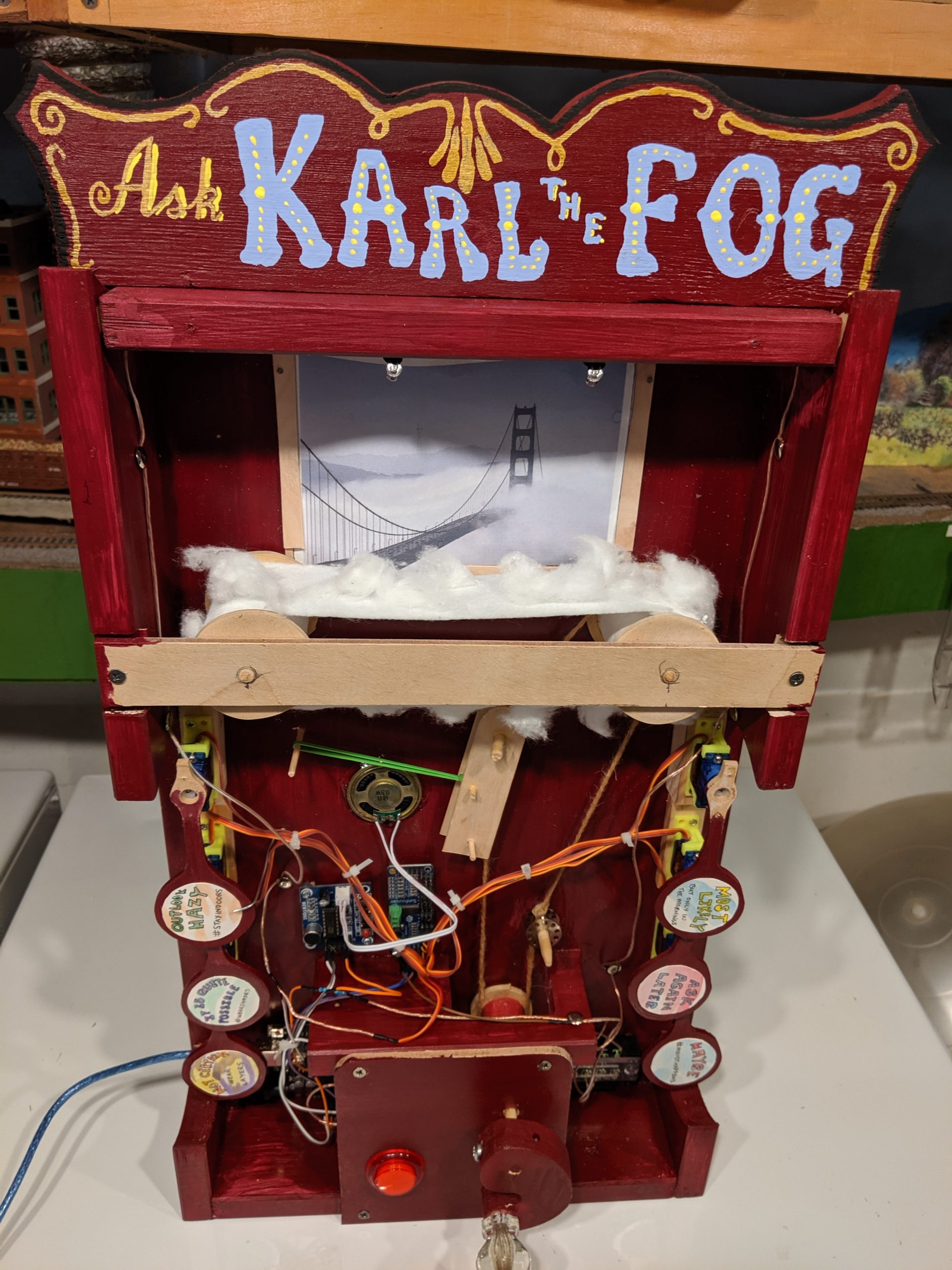 I built a model of the Murphy Windmill in Golden Gate Park. A kinetic sculpture of a chaotic intersection, based on Nextdoor complaints. A fortune teller named after our local weather, Karl the Fog.