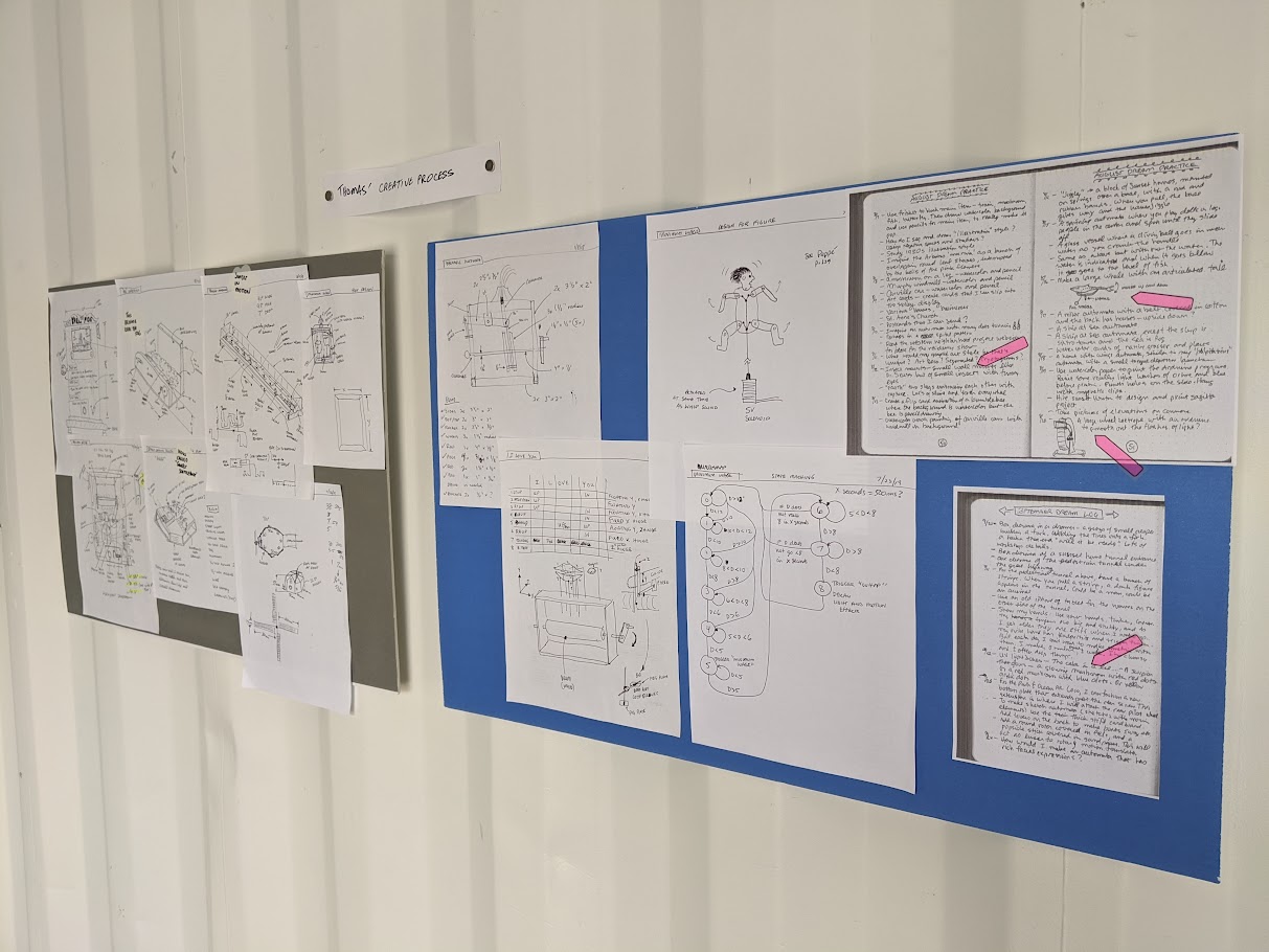 As always, new ideas popped up. I needed to fill a whole shipping container, my makeshift community gallery, so I added more. A Carville diorama. A photo series on the Farallon Islands. A bunch of my cardboard automata mockups. Plus, the sketches and drawings I used to plan everything. I love showing people my process.
