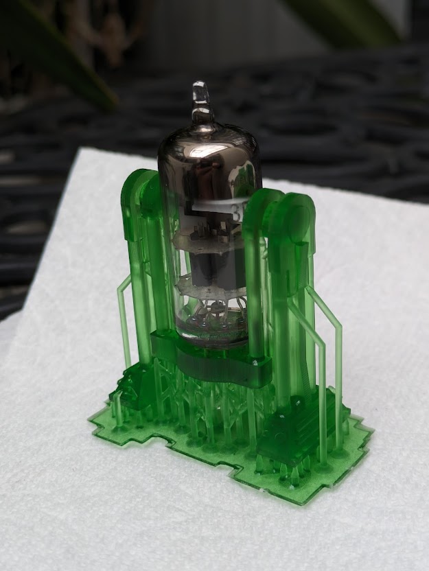 So, I fired up SketchUp. Designed a cradle with robot feet to hold one of the tubes. Printed it out.